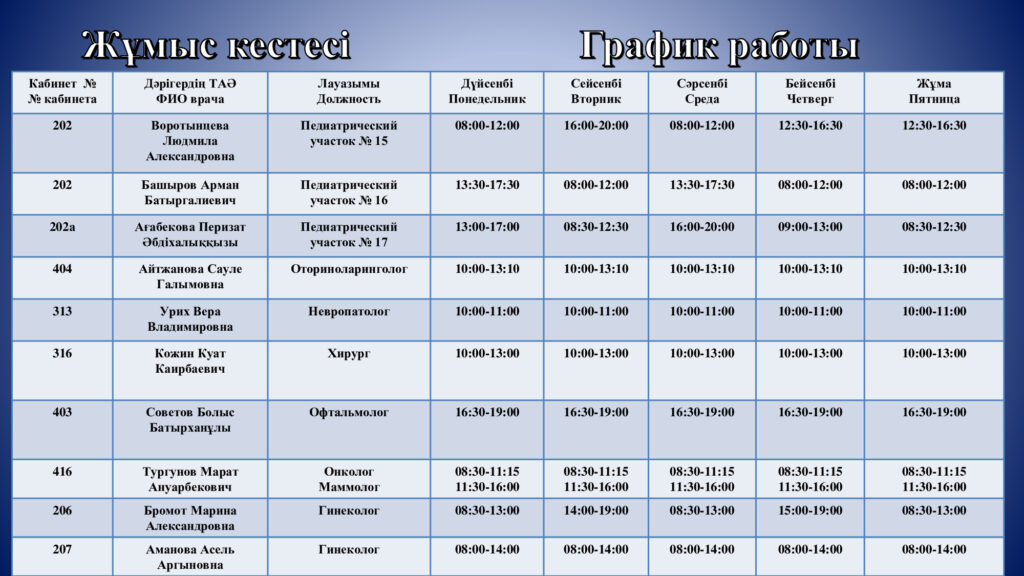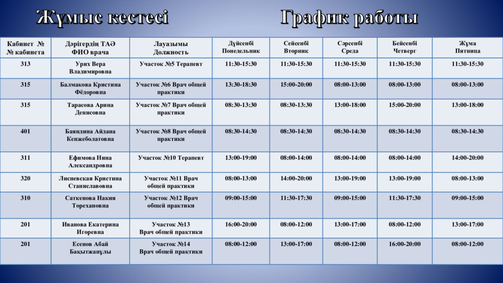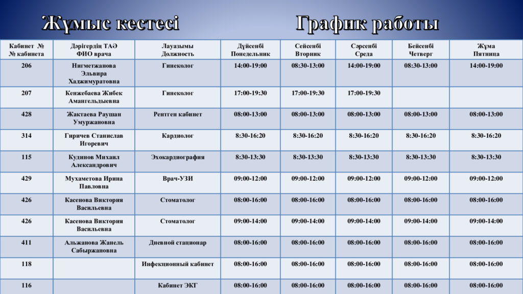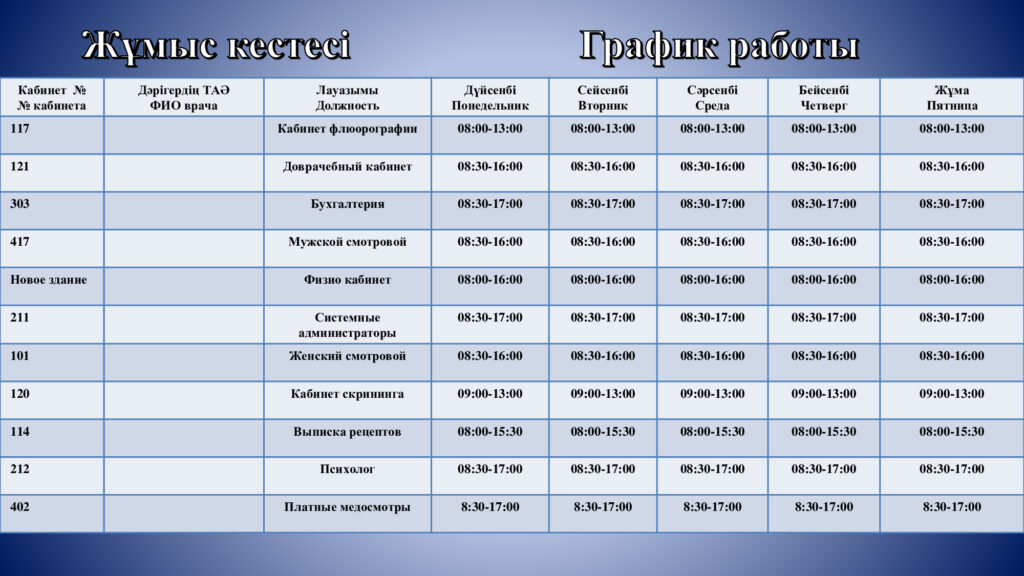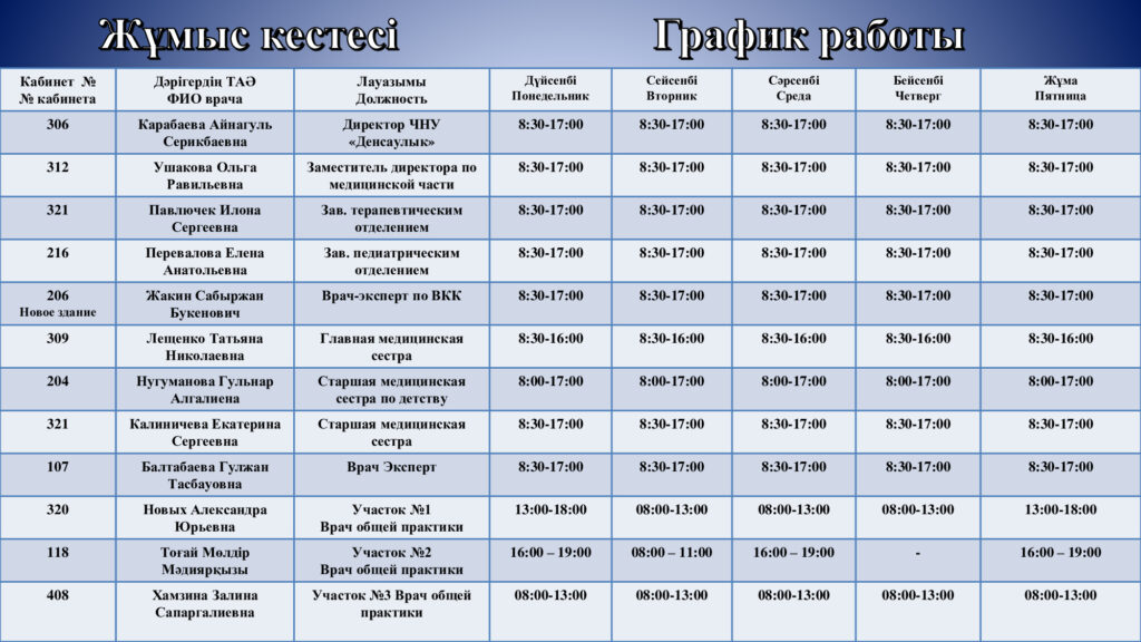 Медицинские услуги, оказываемые в ЧНУ «Денсаулык»